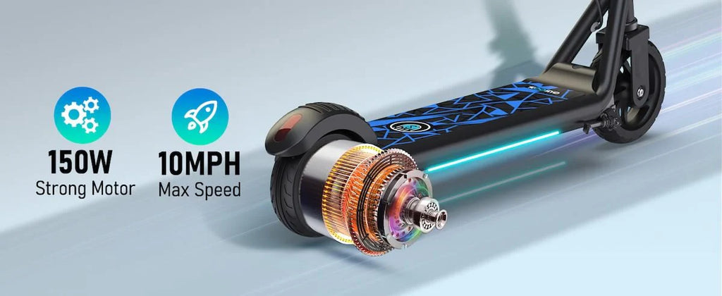 The Gyroor ESA Blue Kids Electric Scooter is the ultimate ride for boys and girls aged 6–12 years. With a 150W motor, a long-lasting battery, and a built-in Bluetooth speaker, your child can ride in style while enjoying their favourite music.